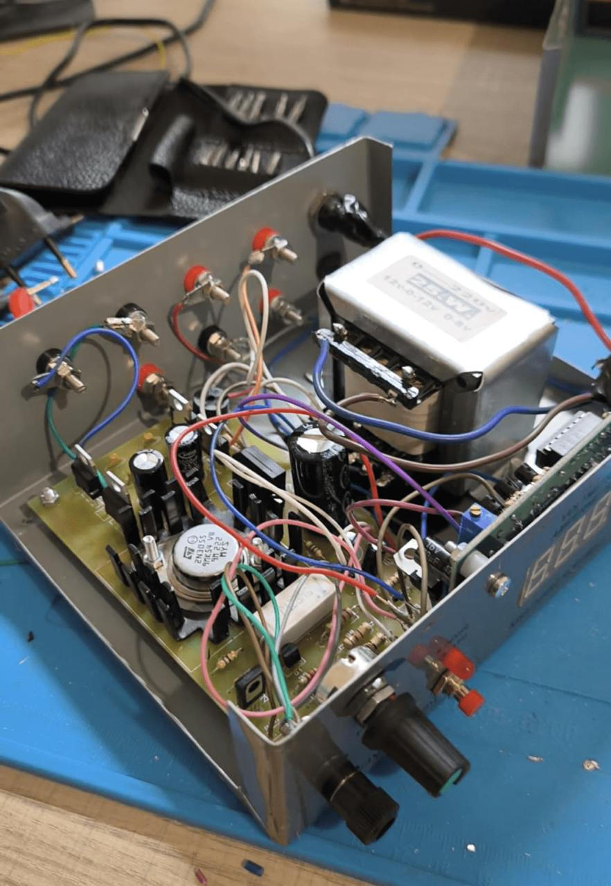 This project is a custom-built power supply unit where I executed every stage, from soldering individual PCB components to the final mechanical chassis assembly. Powered by a 25W transformer, the system is designed to meet diverse laboratory needs.It features fixed symmetric DC outputs (+12V/-12V, +5V/-5V), a 12V AC output, and a fully adjustable 0-24V DC channel. A built-in digital display allows for real-time monitoring of voltage and current levels. Currently fully functional, this unit serves as the primary power source for testing and prototyping my ongoing electronics projects.